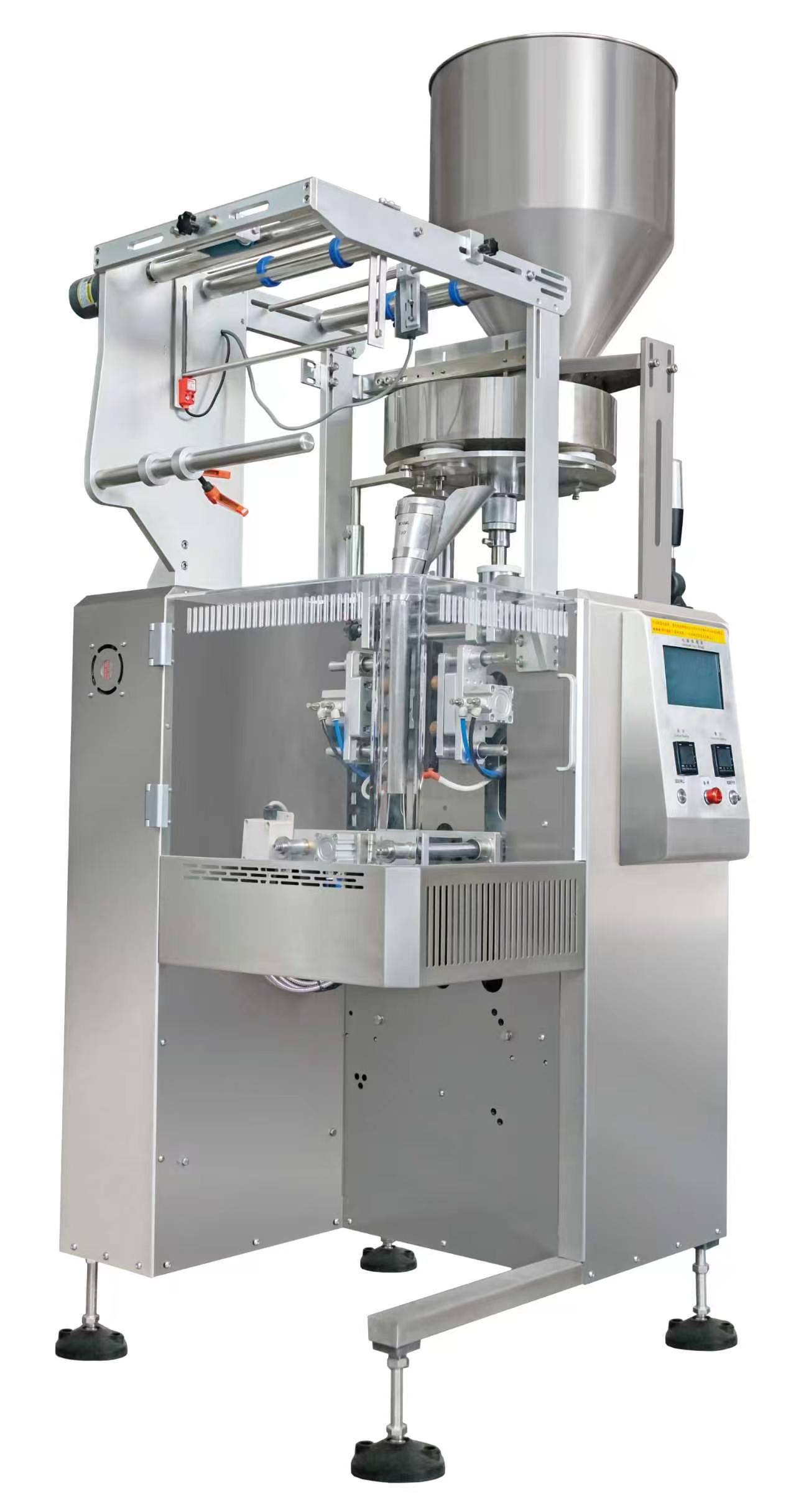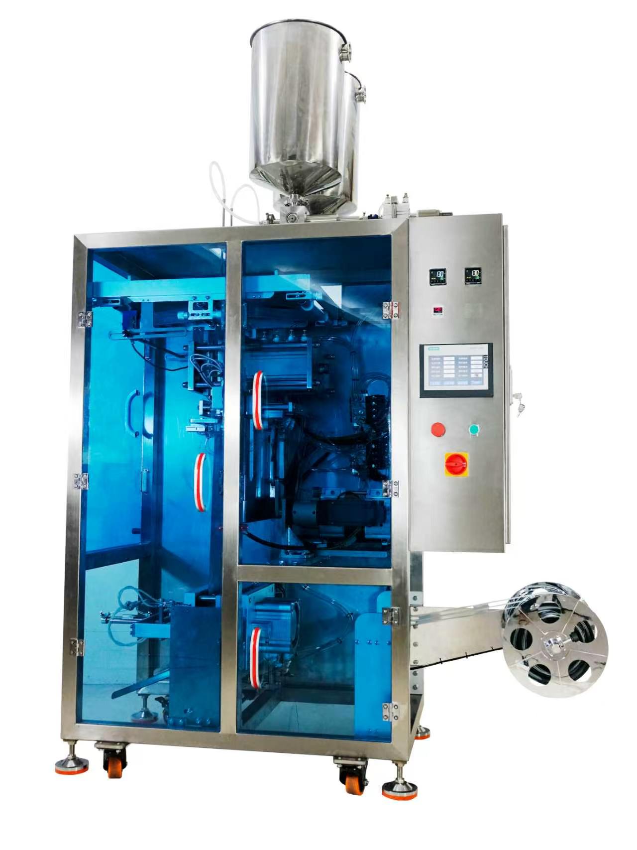 This automatic sachet packaging machine series integrates bag forming, filling, sealing, cutting and counting. It supports 3-side seal, 4-side seal, back seal and special-shaped bag production, with serrated cutter and straight cutter optional.